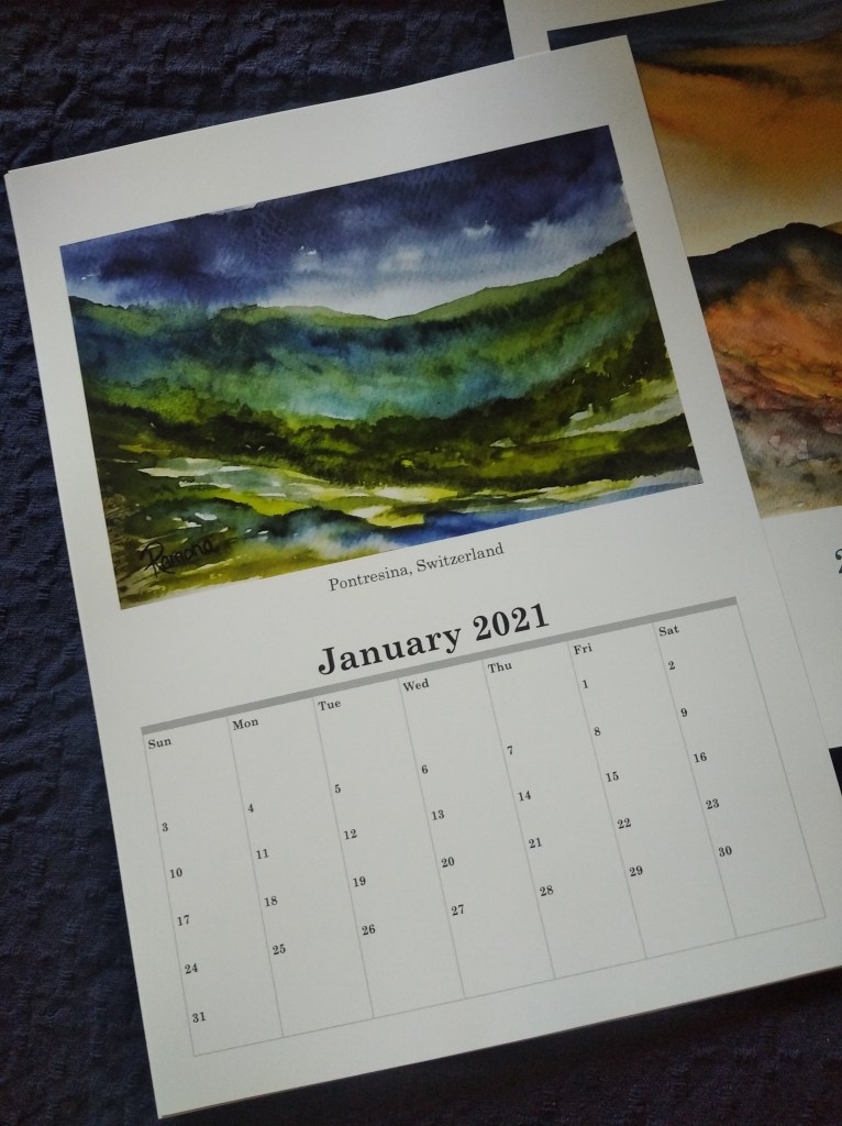 A sneak peek at my 2021 art calendar featuring atmospheric landscapes and seascapes! Sample pages arrived today. Still taking orders.